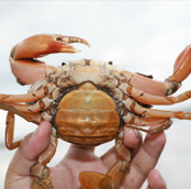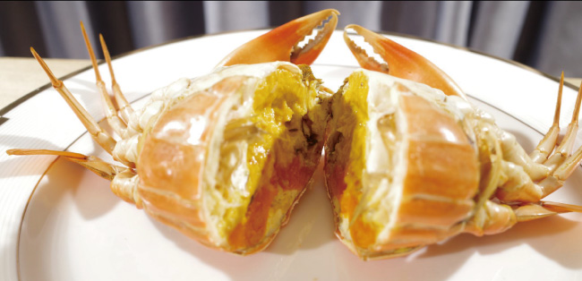 每逢炎夏,青母蟹會(huì)在產(chǎn)卵時(shí)棲身于淺灘河畔,在陽光的照射下,體內(nèi)的蟹膏分解成金黃色的油脂,然后滲透到體內(nèi)的各個(gè)部分,使得整只蟹晶瑩剔透、充滿黃油,因此被稱為黃油蟹。
